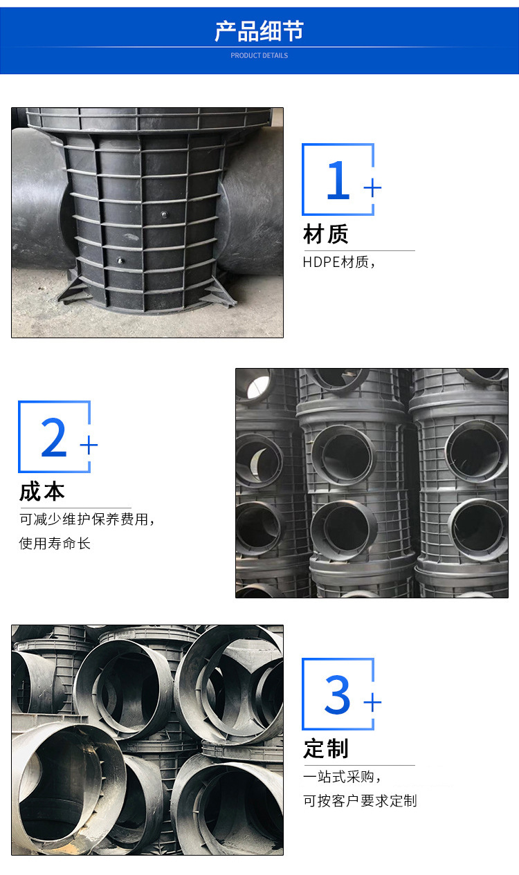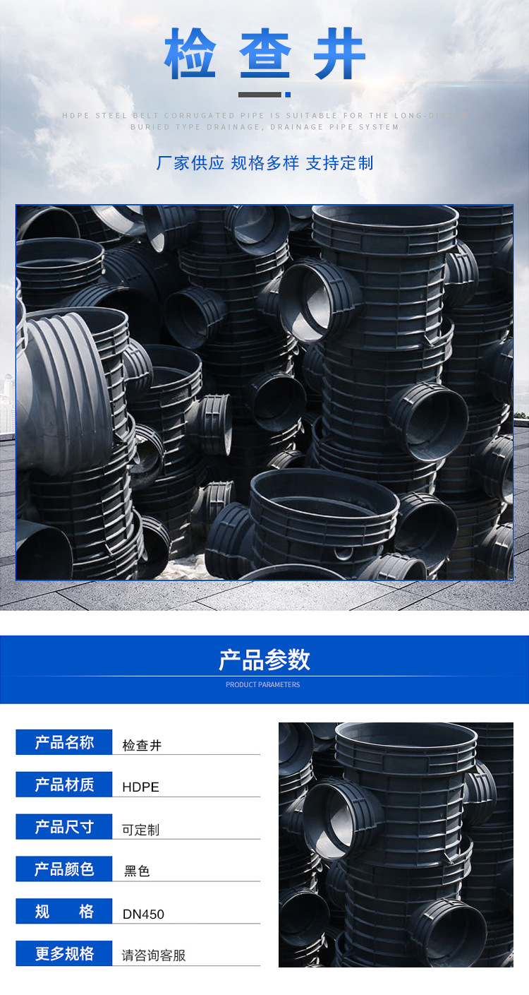 檢查井還可用于電力、光電纜、光纖和其它系統,在制作上可根據要求在任何方向非常簡單的增加新的開孔,以連接不同規格的支管。相關